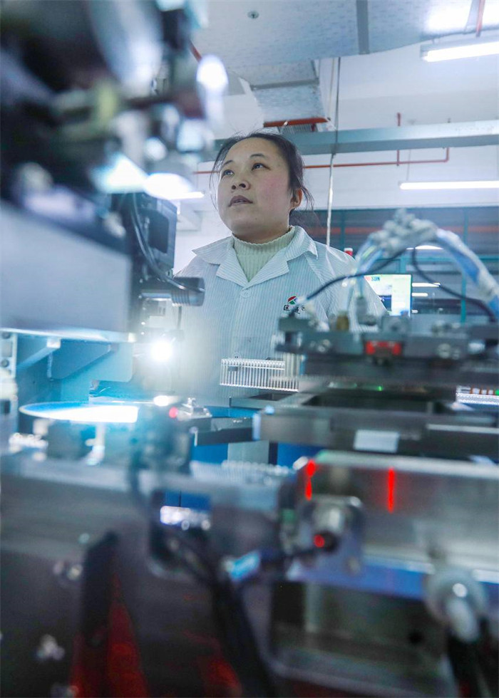 1月27日,湖北省秭歸縣星寶電子有限公司工人在光電耦合器智能生產(chǎn)線上忙碌